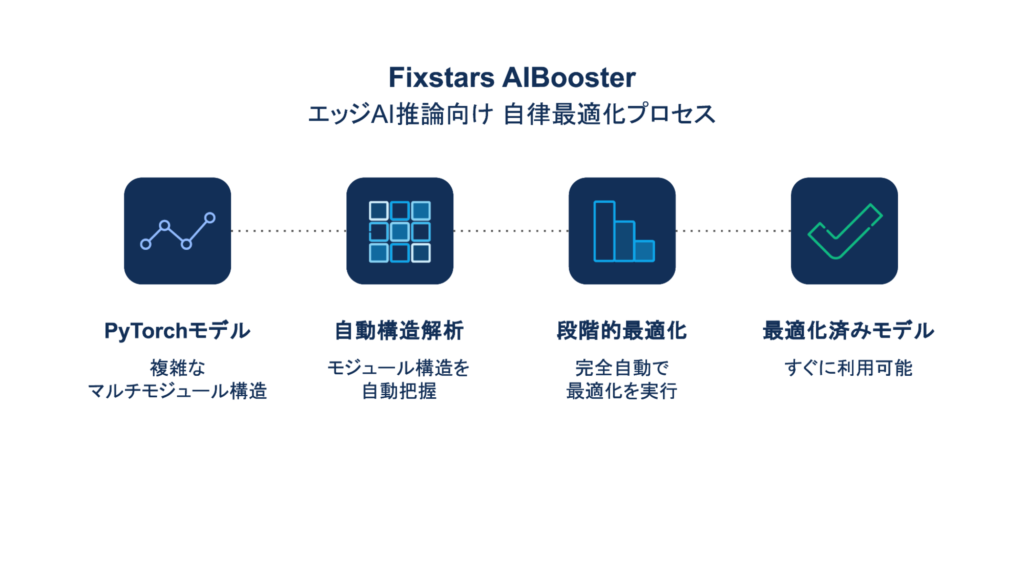 今回、AIBoosterの新機能として、AIモデルの性能を維持したまま、エッジデバイス向けに変換する自律最適化機能を提供します。